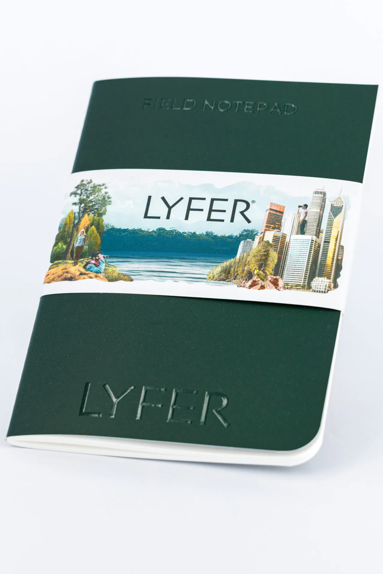 The LYFER Field Notepad is crafted from 100% stone paper, offering a smooth writing surface that resists water and tearing.