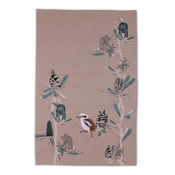 Add some native birds to your kitchen with this generously sized Kookaburra tea towel, made from 100% certified organic cotton. Printed with water-based inks that meet organic standards, it features stunning embroidery that brings a touch of elegance to your home.