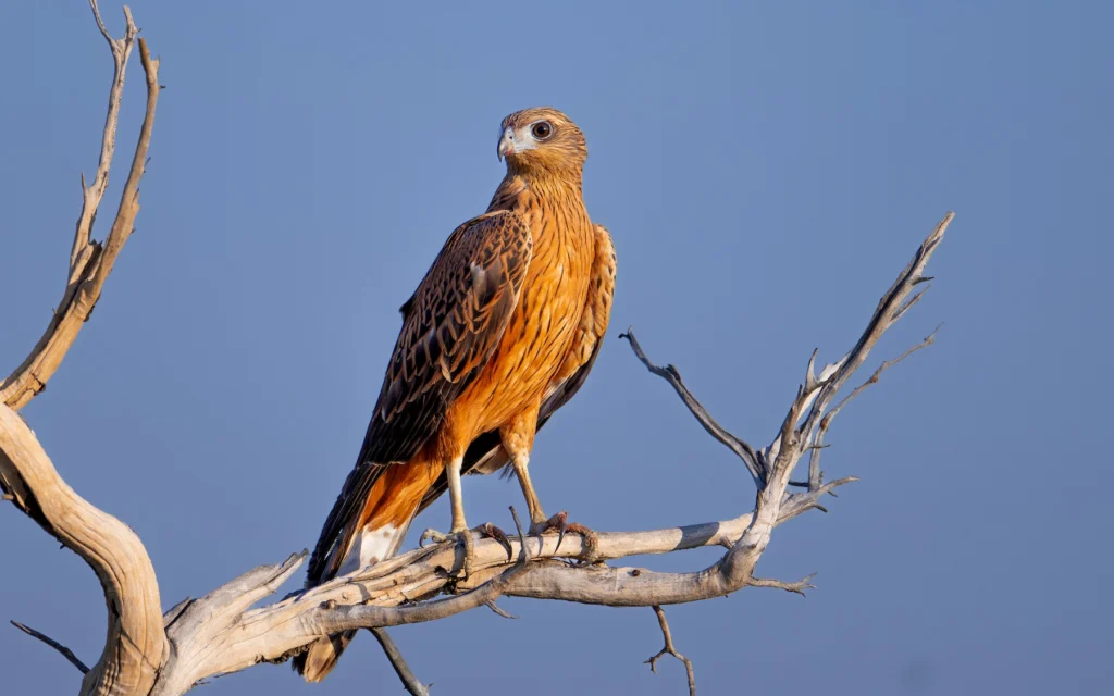West of Alice Springs, in the arid woodlands of Ngalia Warlpiri and Luritja Country, ecologist Dr Tim Henderson was tracking possums at Newhaven Wildlife Sanctuary when he glimpsed a deep-rufous hawk drift above the open canopy. It looked unfamiliar. He raised his camera, fired off a few frames, and watched it vanish into the distant woodland.