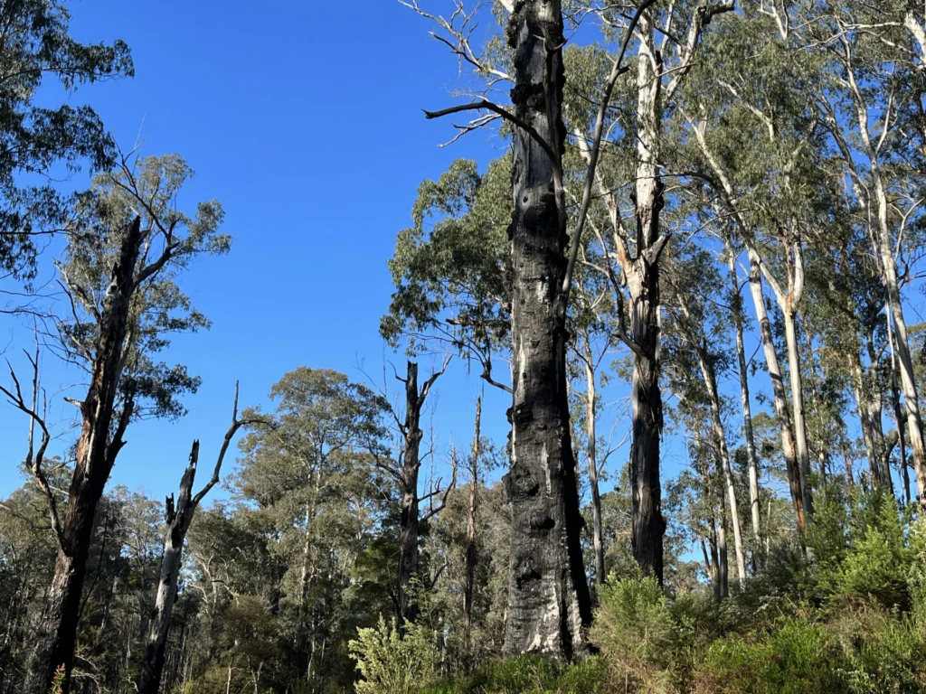 Over subsequent years, I didn’t have the heart to return to any of those blackened forests that had so inspired us. I could only too easily imagine eerie, silent, apocalyptic landscapes. However, at the end of 2024, I was nearby and had a few days free. Did I really want to go back to Waratah Flat? I wasn’t sure. As I followed those forest roads through a dismal landscape of stark, incinerated trees, I felt more an obligation to document than a desire to visit again.