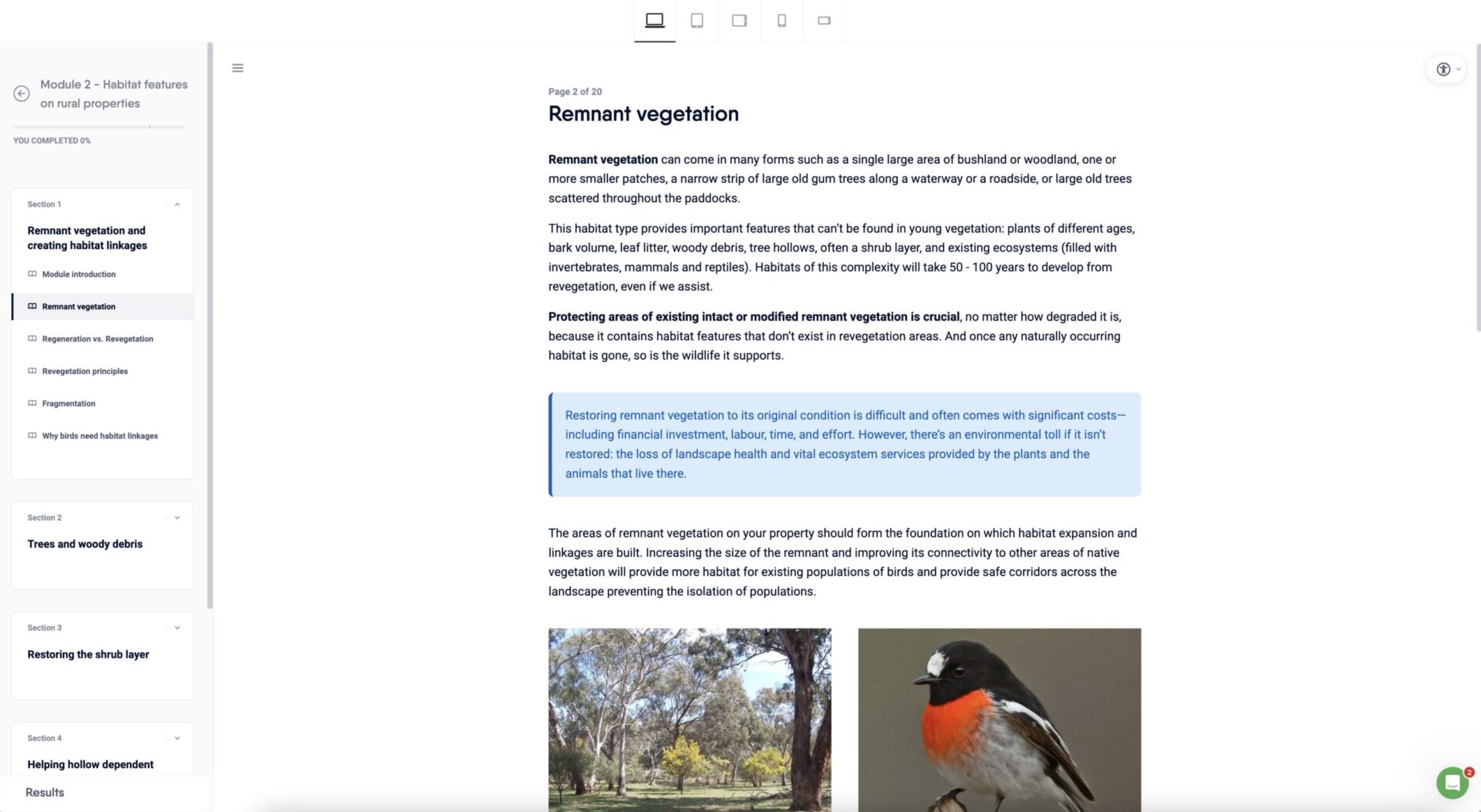 After you’ve finished the course, you’re welcome to revisit it as often as you need while you implement your habitat restoration projects.