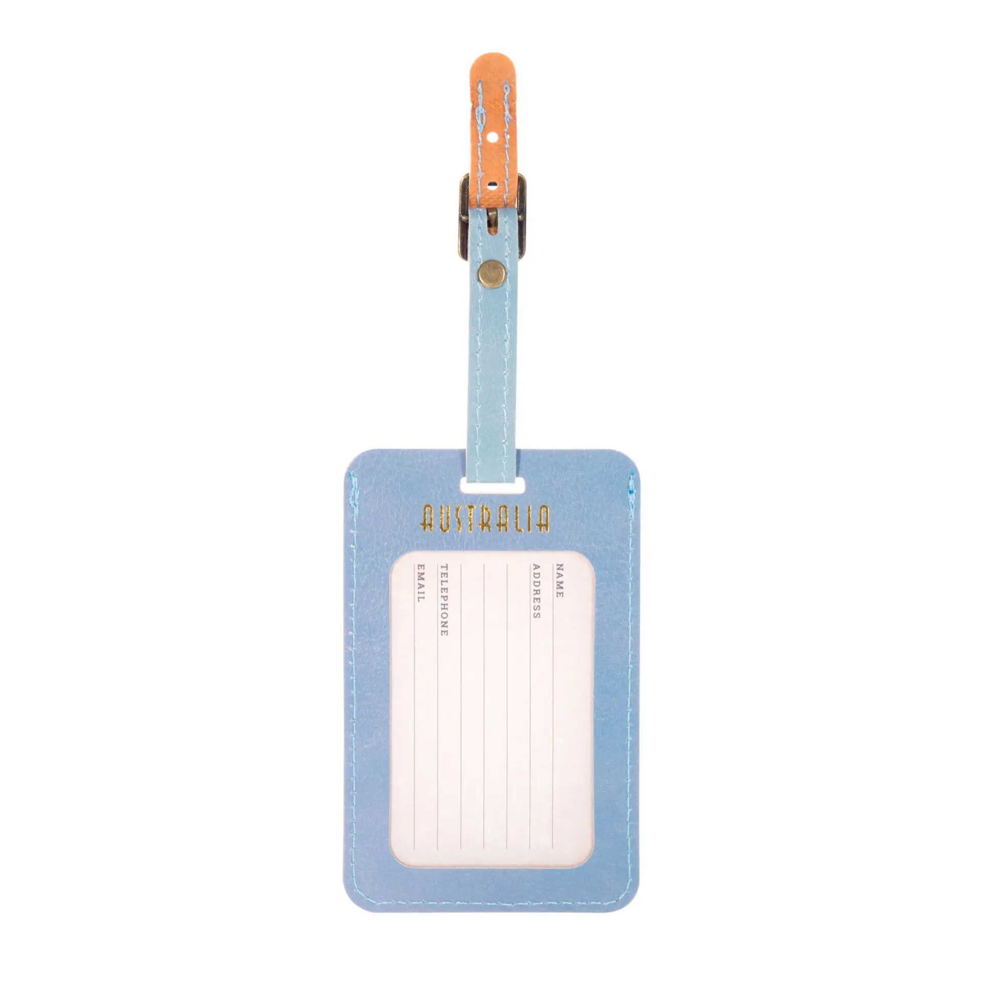 Luggage tags measure 7 x 11.3cm.