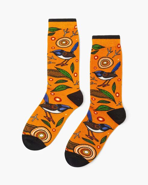 Designed in collaboration with contemporary Indigenous artist, Nathan Patterson, these signature bamboo blend socks feature the Native Australian Blue Wren. The artworks were digitally printed onto Bamboozld’s signature socks, making them truly unique and original.