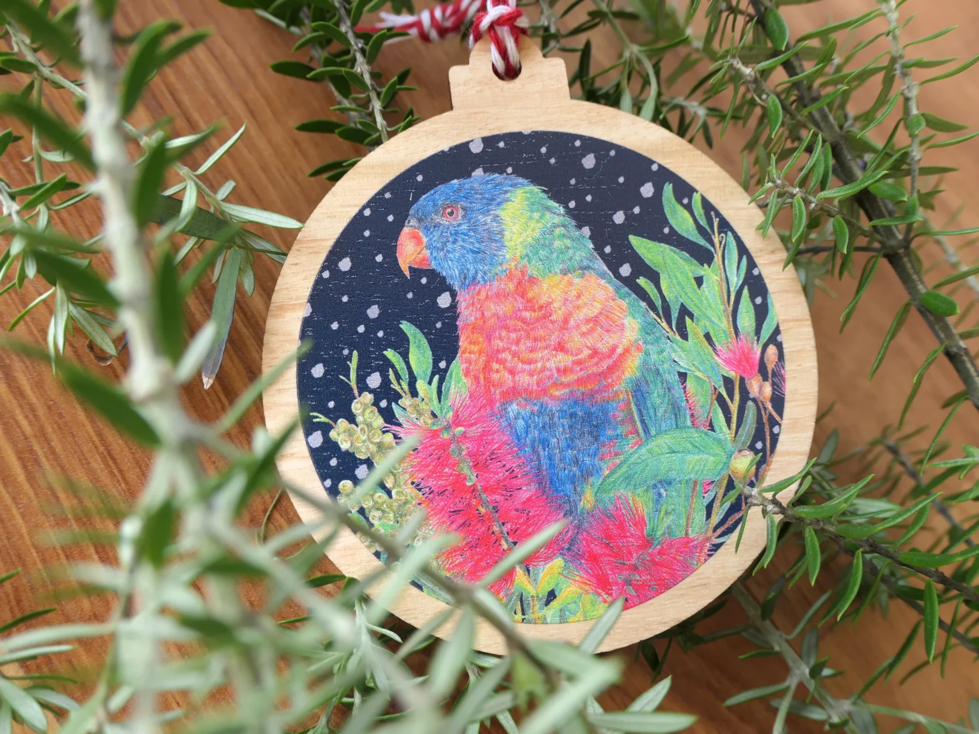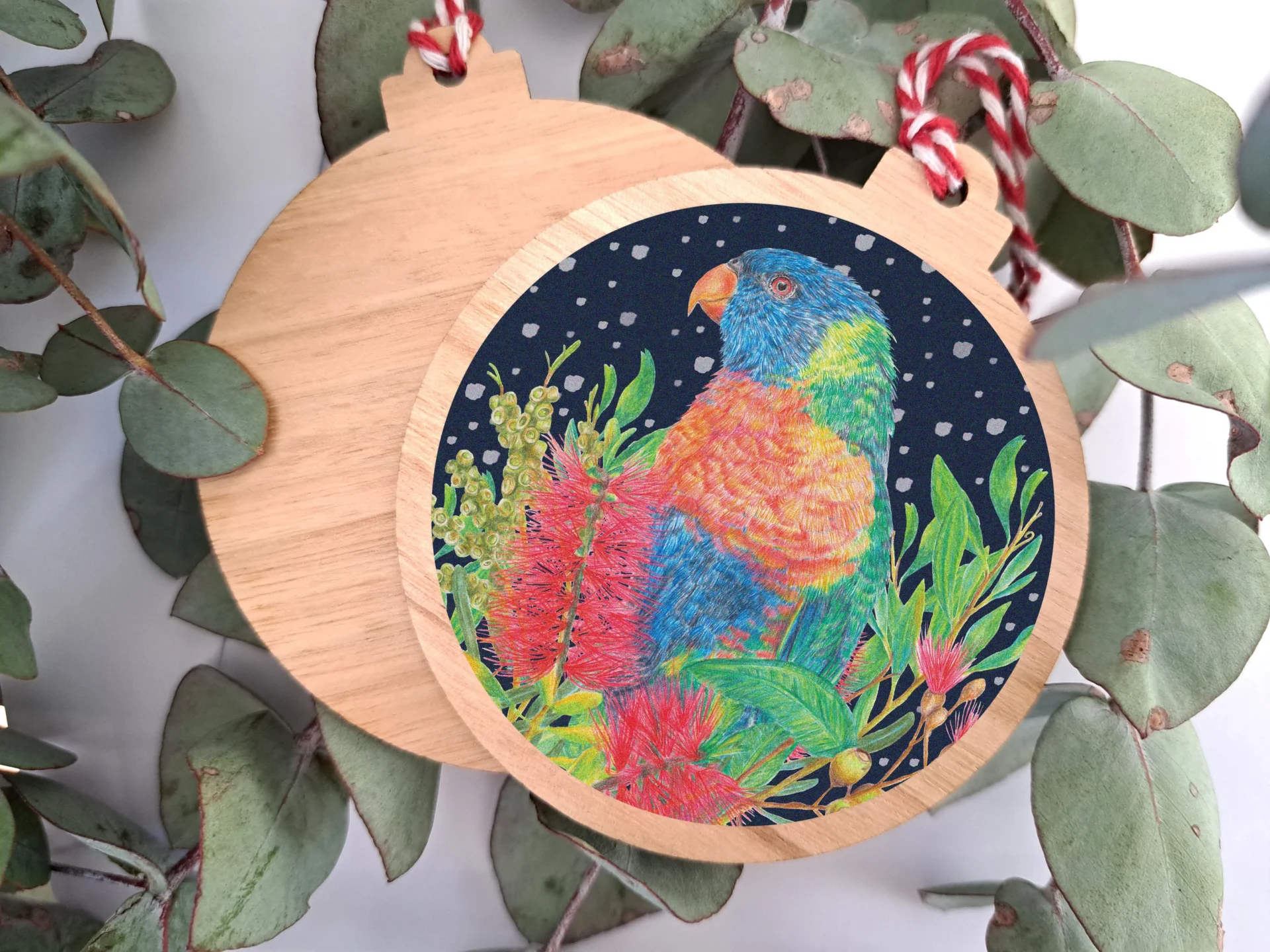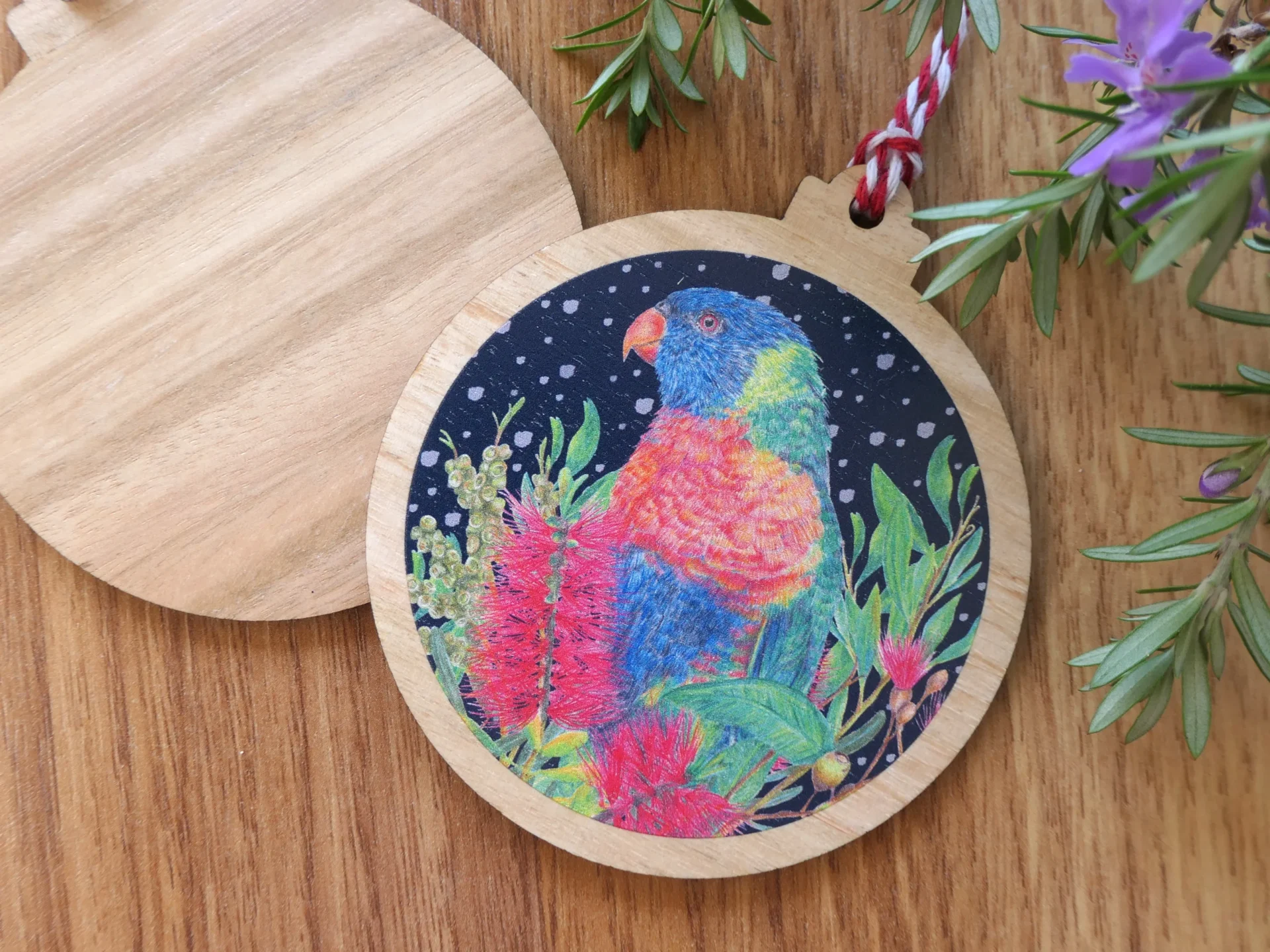 Wooden Christmas Ornament – Rainbow Lorikeets