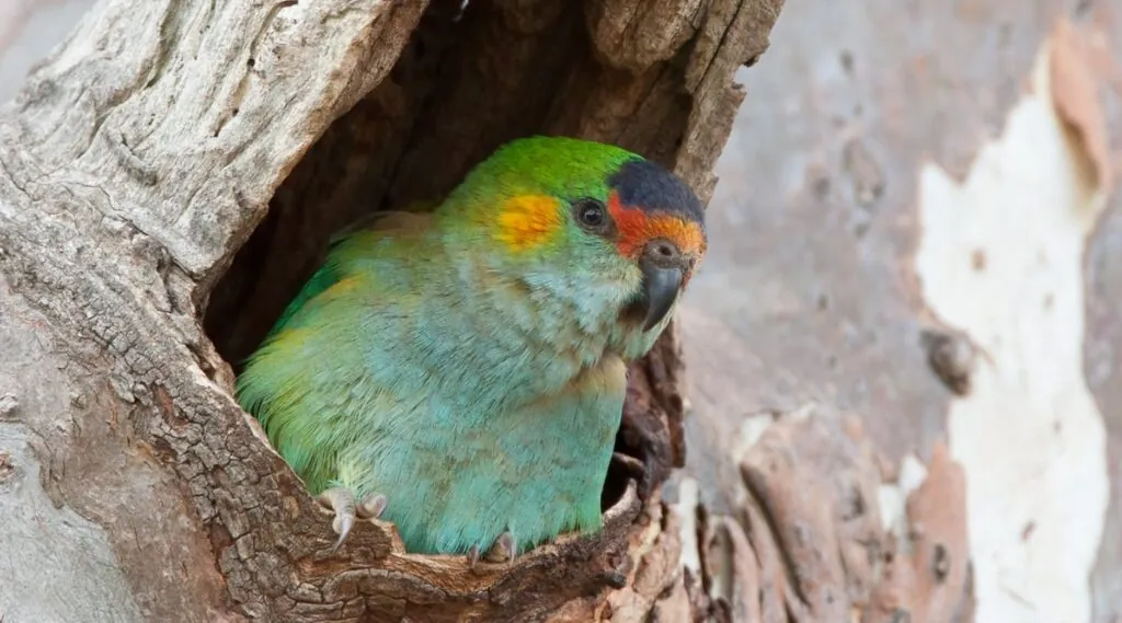 Purple-crowned Lorikeet Scientific Name: Glossopsitta porphyrocephala https://birdlife.org.au/bird-profiles/purple-crowned-lorikeet/ …its screeching call, either from birds flying swiftly overhead, or from birds foraging high in the canopy of a gum tree. They are often noisy as they feed on the nectar of flowering eucalypts, regularly in the company of other nectar-feeding birds, such as Rainbow, Musk and Little Lorikeets, as…Read more