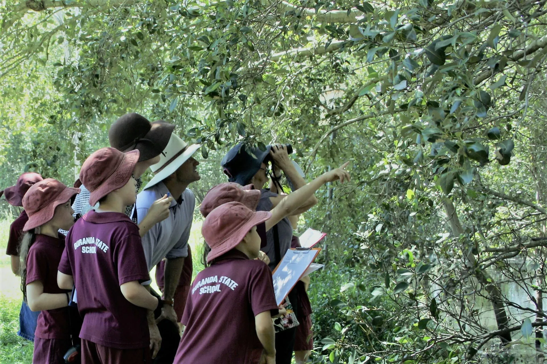 The Birdlife Southern Queensland committee provides subsidised student birding guide booklets to teachers and students to support one aspect of bio-science science lesson requirements. Binoculars are available for an entire class when school grounds are part of the lessons. Volunteers assist with bird identification and talks. A working with children Blue cards is a requirement for volunteers.